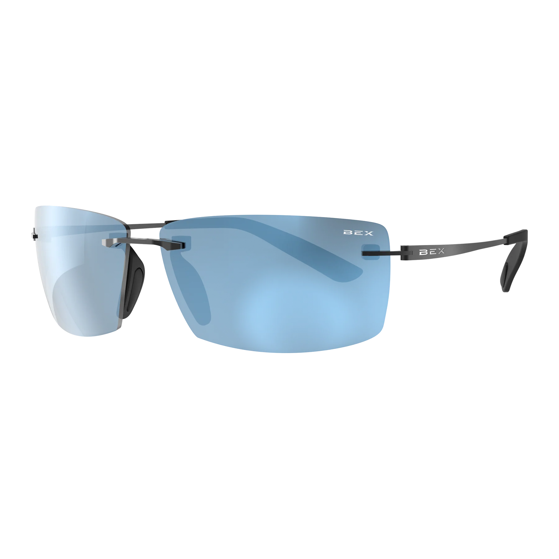 O design sem aro, projetado com precisão, aliado às hastes de titânio, garante que os óculos de sol permaneçam firmemente no lugar, enquanto as hastes elegantes se acomodam confortavelmente ao redor do pescoço. Possuem armação antimicrobiana para manter seus óculos frescos por mais tempo, além do inovador sistema BEX® Universality®, com plaquetas nasais extras armazenadas nas pontas das hastes para fácil substituição.